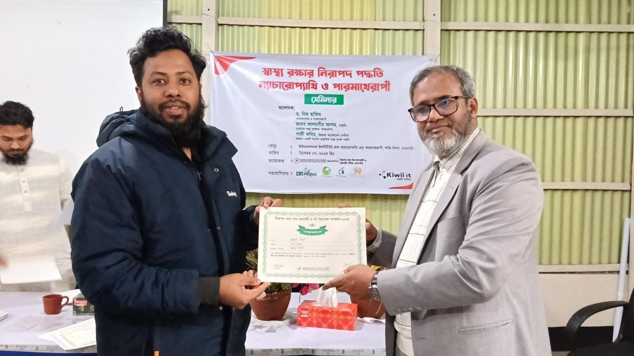 ড. নিম হাকিম তার বক্তব্যে ন্যাচারোপ্যাথি বিষয়ে গুরুত্বপূর্ণ আলোচনা করেন এবং তার উদ্ভাবিত “পারমাথেরাপী” পদ্ধতির বৈজ্ঞানিক ভিত্তি, কার্যকারিতা ও মানবস্বাস্থ্যে এর ইতিবাচক প্রভাব নিয়ে বিস্তারিত আলোকপাত করেন। বক্তারা নিরাপদ খাদ্য নিশ্চিতকরণ, সচেতন উদ্যোক্তা গড়ে তোলা এবং স্বাস্থ্যসম্মত খাদ্য ব্যবস্থার গুরুত্ব তুলে ধরেন।