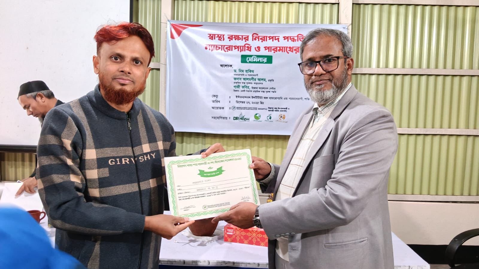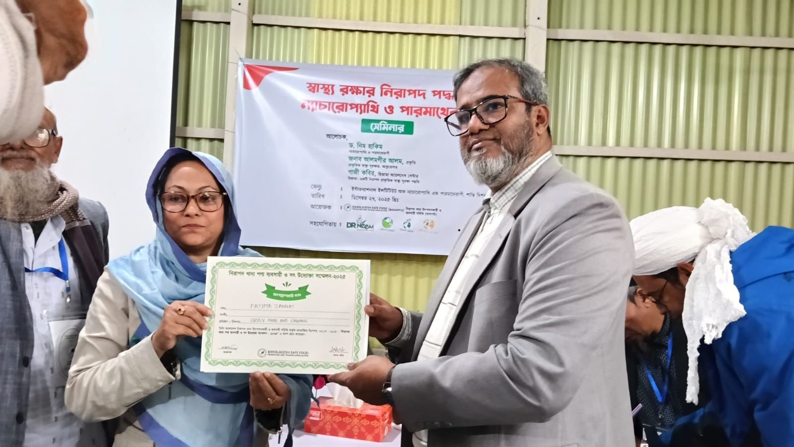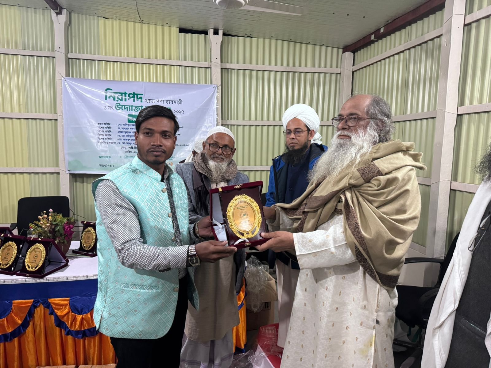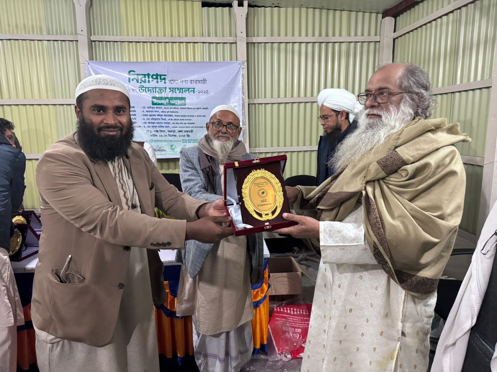 নিরাপদ খাদ্য পণ্য ব্যবসায়ী ও সৎ উদ্যোক্তা সম্মেলন ২০২৫-এর সমাপনী অনুষ্ঠান অত্যন্ত সুশৃঙ্খল ও সফলভাবে সম্পন্ন হয়। এ উপলক্ষে আয়োজিত অনুষ্ঠানে অংশগ্রহণকারী নিরাপদ খাদ্য পণ্য ব্যবসায়ী ও উদ্যোক্তাদের মাঝে সার্টিফিকেট ও সম্মাননা ক্রেস্ট প্রদান করা হয়, যা তাদের সততা, গুণগত মান ও দায়িত্বশীল ব্যবসায়িক উদ্যোগের স্বীকৃতি হিসেবে বিবেচিত হয়।